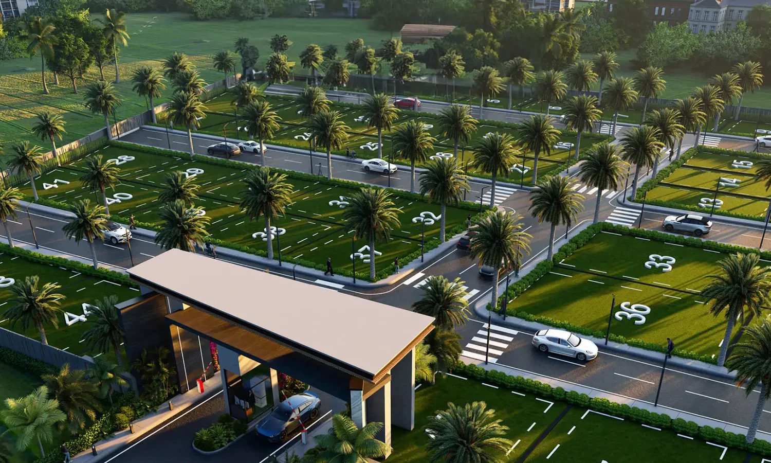 Residential plots with wide roads and smooth vehicle access.