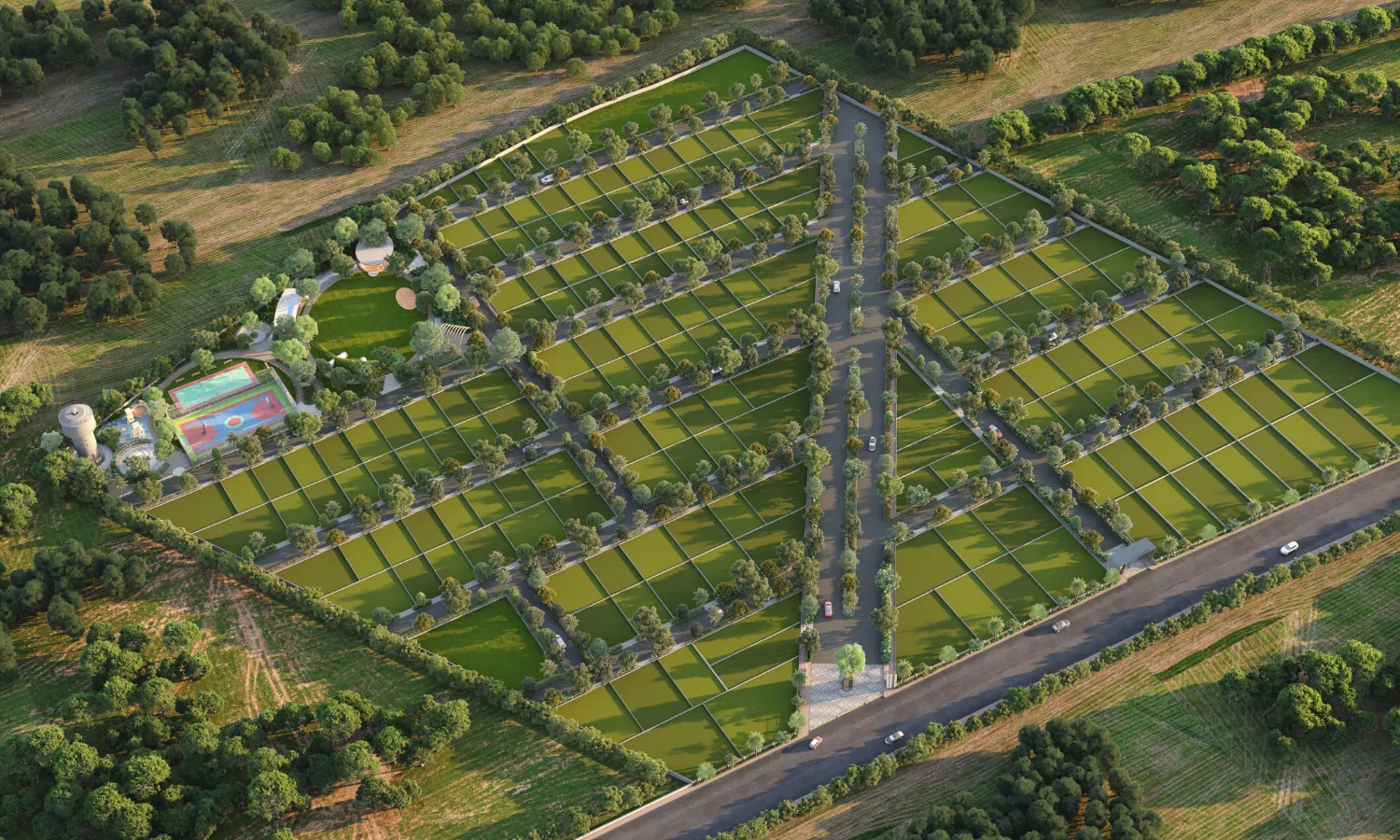Residential plots with wide roads and smooth vehicle access.